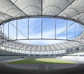 膜結(jié)構(gòu)建筑具有防噪功能很有必要,特別是在一些運(yùn)動(dòng)場(chǎng)膜結(jié)構(gòu),體育場(chǎng)膜結(jié)構(gòu),球場(chǎng)膜結(jié)構(gòu),廣場(chǎng)膜結(jié)構(gòu),舞臺(tái)膜結(jié)構(gòu)等。膜結(jié)構(gòu)建筑防噪功能的實(shí)現(xiàn)是通過(guò)膜結(jié)構(gòu)聲學(xué)設(shè)計(jì)集中圍繞兩方面的聲學(xué)品質(zhì)進(jìn)行。第一,如何屏蔽外部噪聲對(duì)建筑內(nèi)部的影響;第二,建筑內(nèi)部輪廓對(duì)回聲作用與混響時(shí)間影響。噪聲與回聲需要考慮的因素截然